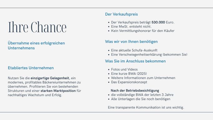 Bäckerei - Nachfolger (m, w, d) gesucht -